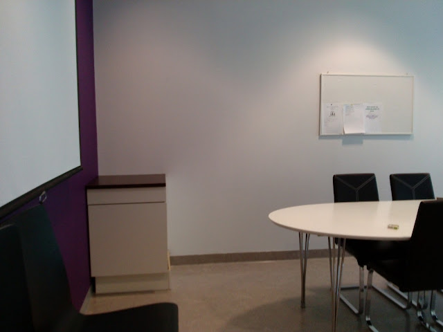 De første timene i dag gikk ganske sent, og det var igrunn ingenting å gjøre. Men i 12-tiden fikk vi tak i veggmaling, så de satt meg i arbeid til å male to vegger nede i 1.etg. Jeg fikk tatt to strøk på hver vegg, så de ble ferdige i dag.